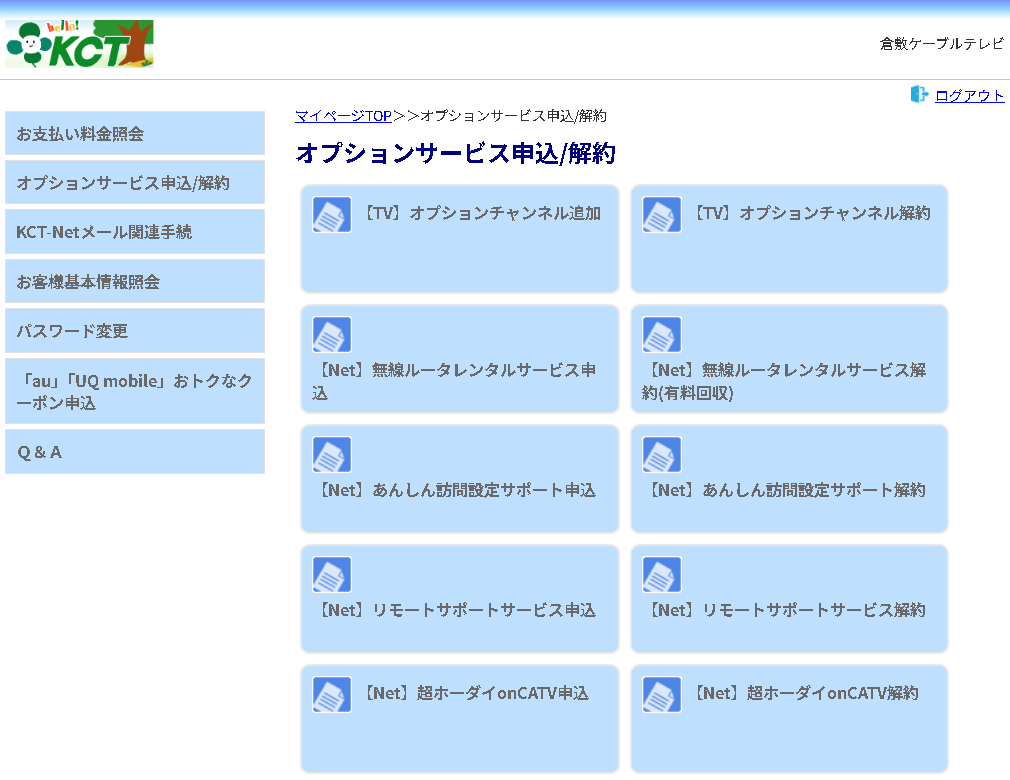 マイページで変更可能なオプションサービスは以下をご確認ください。