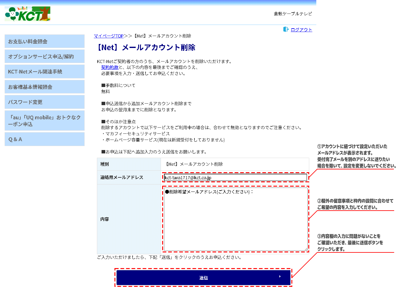 ※以下は「【Net】メールアカウント削除」を申し込んだ場合の例です。